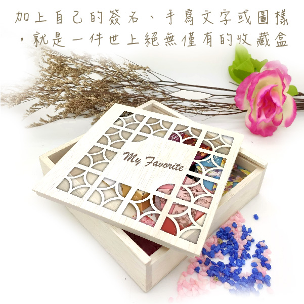Hi 女孩!生活中是不是都有些自己喜歡收藏的物件呢!就喜歡放在自己精心擇選的盒子裡,隨時拿出來翻看,什麼樣的收納盒最得你的青睞呢?可以運用不同材質的特性,例如精緻的紙盒、溫潤的木盒、透明的壓克力…等,加上自己的簽名、手寫文字或圖樣,就是一件世上絕無僅有專屬自己的收藏盒,甚至拿這樣的收藏盒來送禮,或是用來包裝你精心挑選的禮物,都是一種創意與心意的聯結,是一份充滿濃濃情誼的心坎禮!