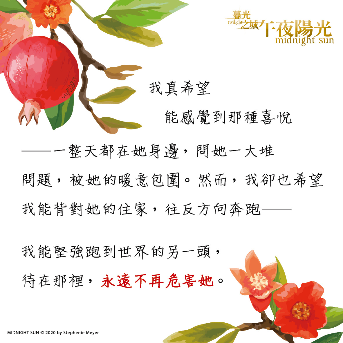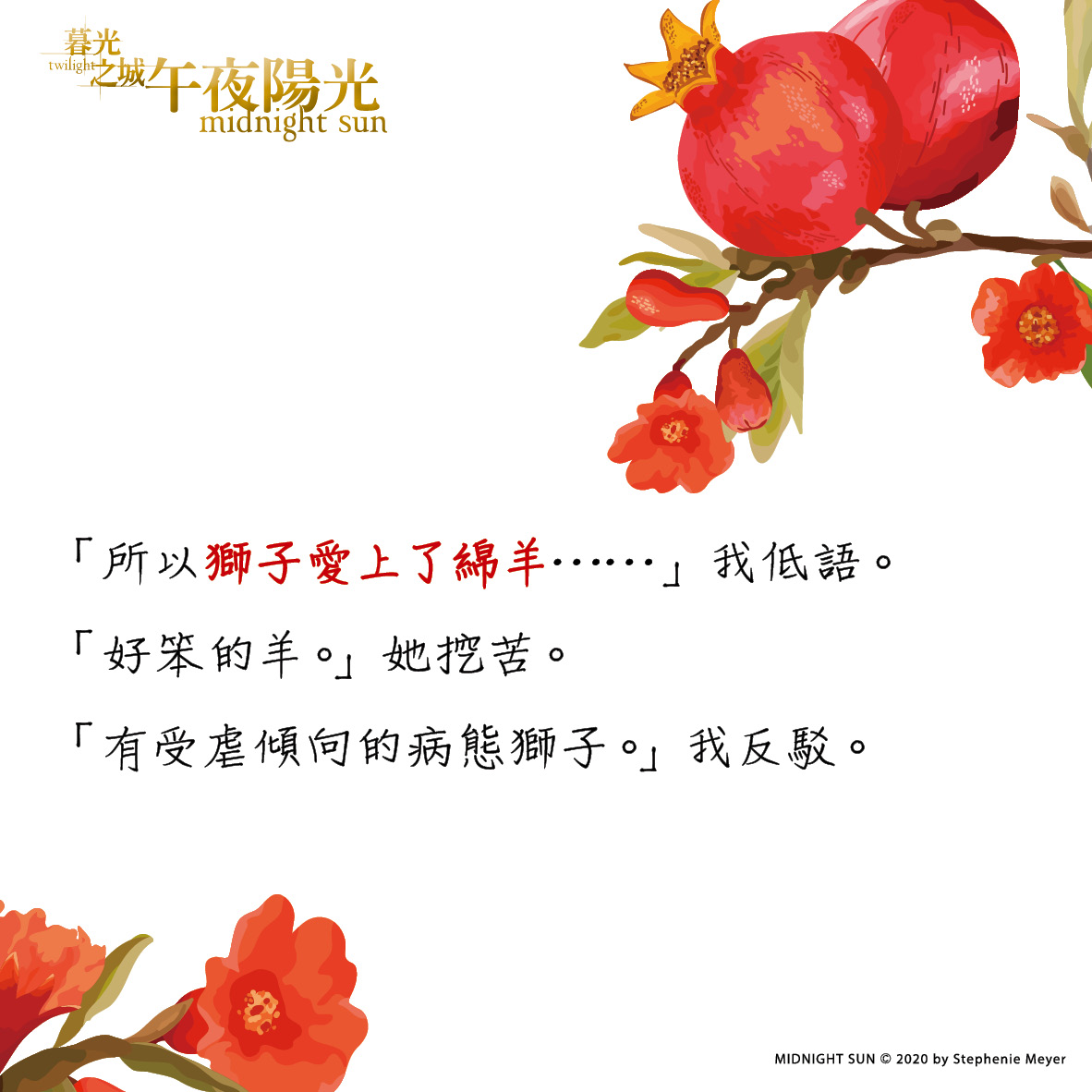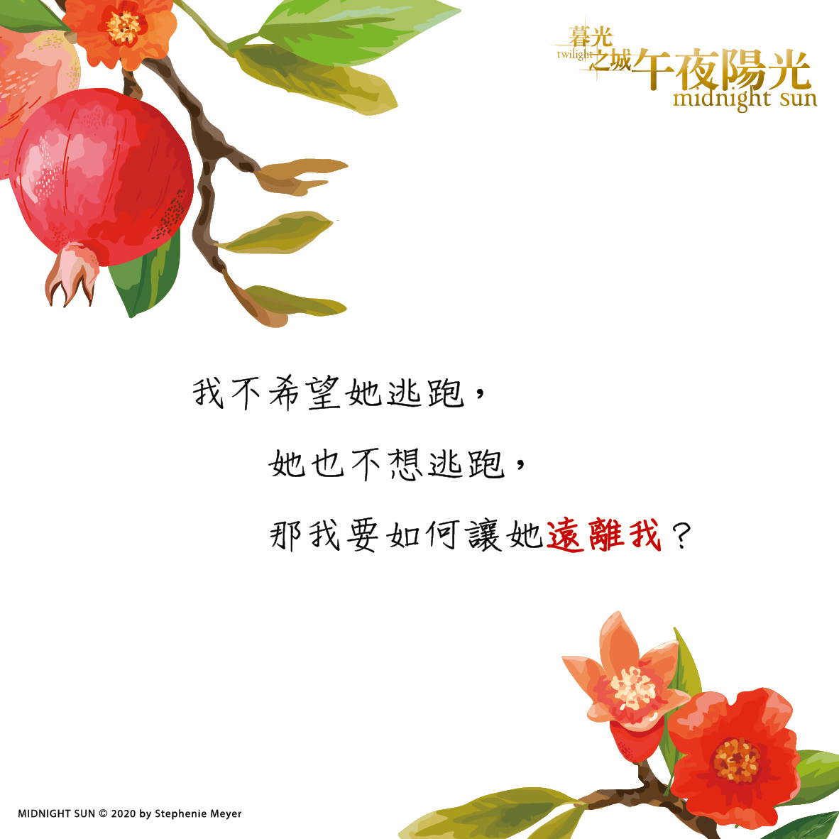 然而愛德華控制不住對貝拉的好,彷彿餵她吃下一顆又一顆的石榴籽,兩人的未來終將往失控的方向走去……
