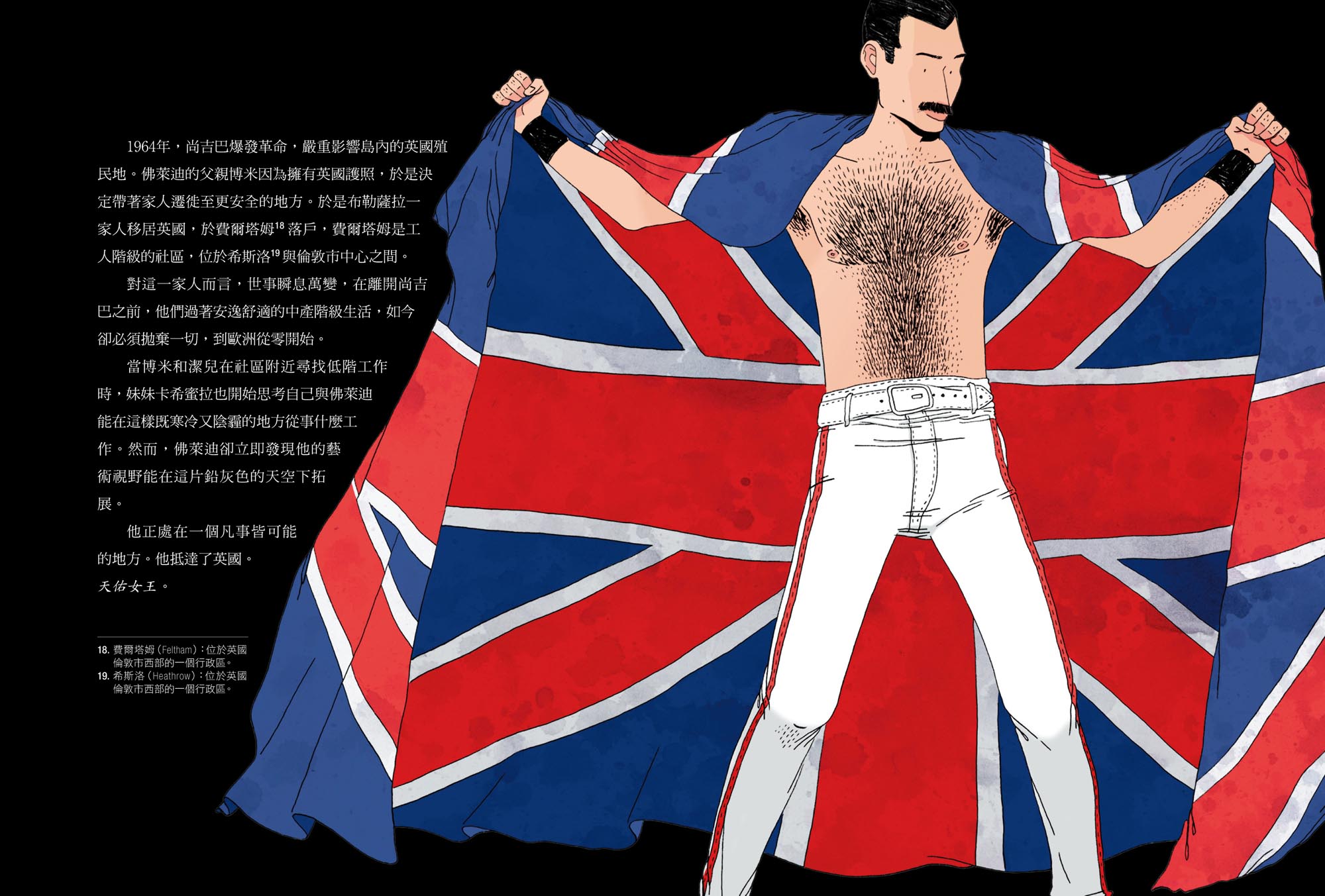 ▎以鮮明插圖耙梳搖滾天王佛萊迪・墨裘瑞Freddie Mercury璀璨奪目的一生。