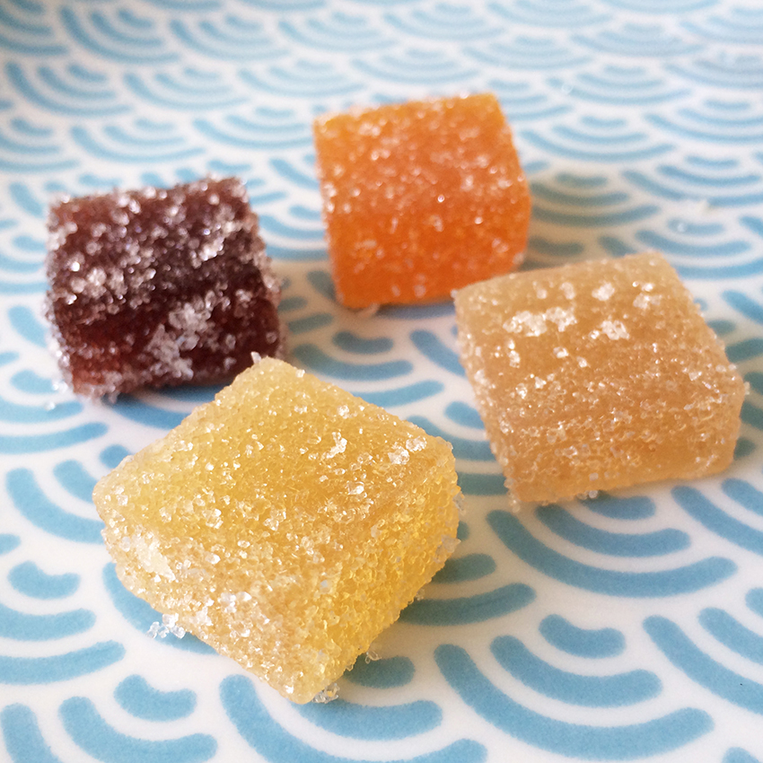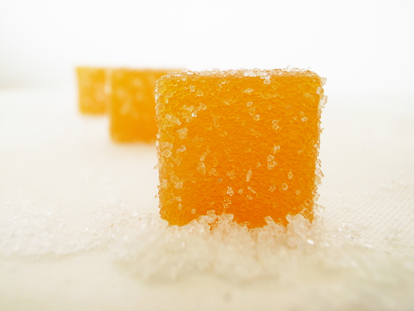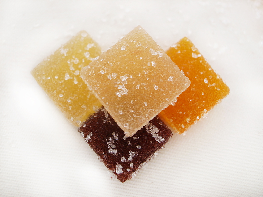 ◆法式軟糖的口感介於果醬與軟糖之間的法式軟糖,因內含的【蘋果果膠】讓口感上比較偏軟中帶點Q,而有別於一般市售由【動物果膠粉(明膠)】凝固成型、帶有嚼勁口感的軟糖,有著明顯的差異,所以素食也可以吃唷!