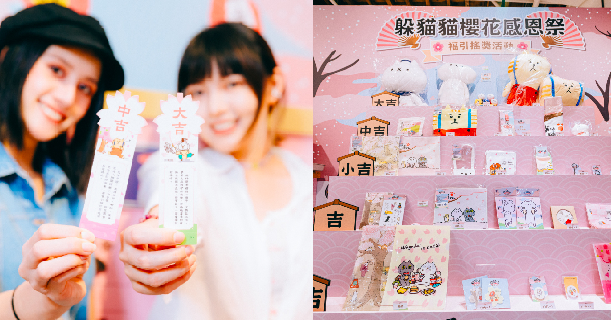 於躲貓貓櫻花季快閃店消費滿300元,即可至入口「櫻花貓神社」隨機抽「櫻花籤詩書籤」1張(共9款),數量有限抽完為止。
