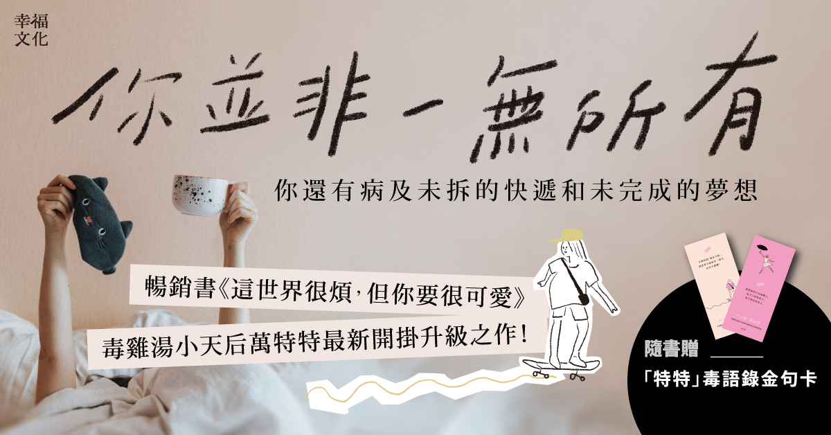 「她的語氣離溫婉暖心有段距離,可是她叫人認清現實,這是她的真情意。」── 洪仲清(臨床心理師)《你並非一無所有》更多特特金句請點擊:https://bit.ly/3o7bXod