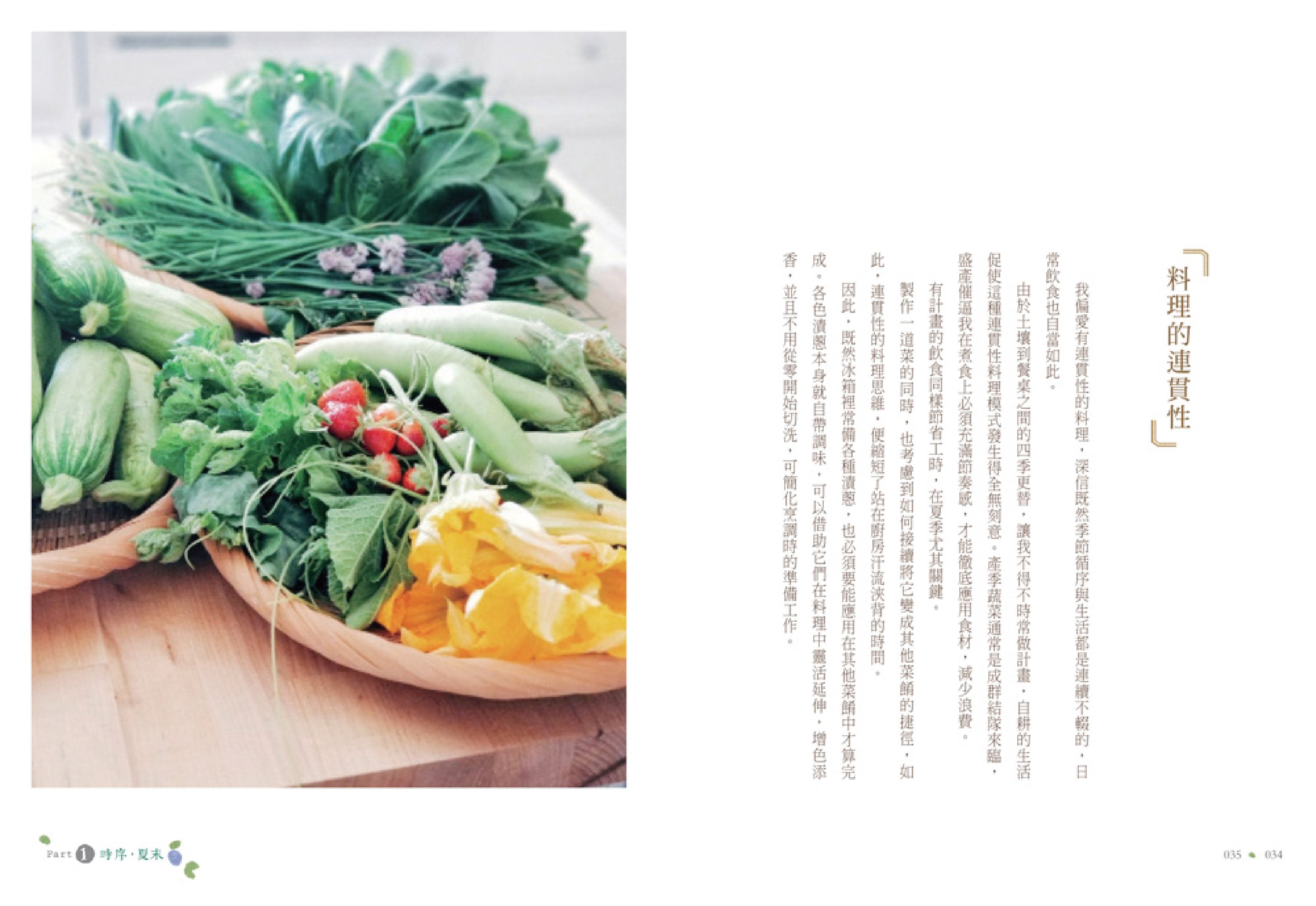 食譜不設限,順應那些落入手中的季節食材,隨心變化,展現四季流轉的煮食節奏。