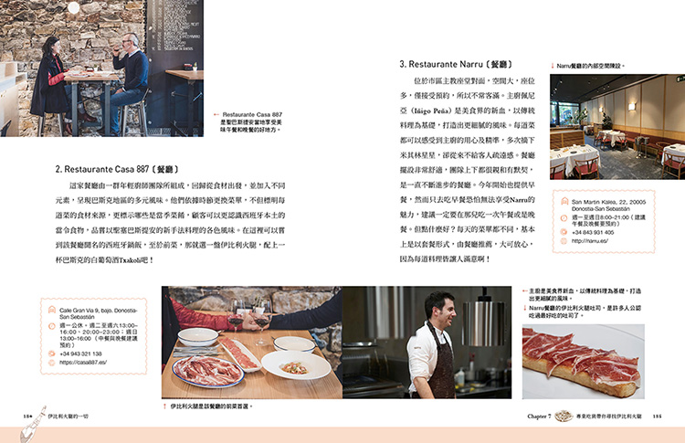 各位也將更認識西班牙的飲食文化和歷史、人文風俗、伊比利火腿與餐酒的搭配關鍵、如何以火腿入菜,並介紹西班牙當地的特色餐廳,讓讀者可以親自拜訪。