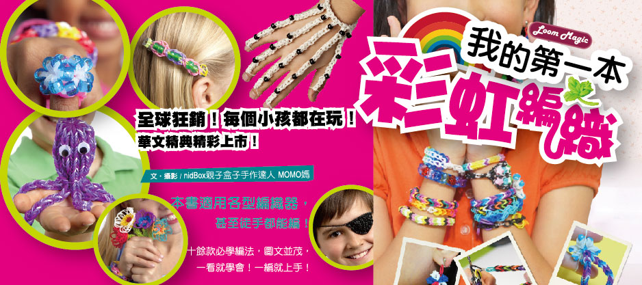 風行歐美的彩虹編織,造成一股轟動,如今這股風潮已席捲至華人社會。彩虹編織是利用特殊的編織器,把彩色橡皮筋編織成各種飾品。