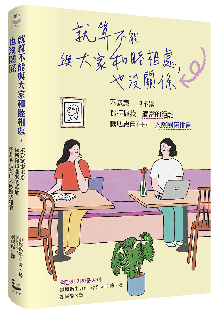 雖然人總需要有人陪,但關係太近會覺得有壓力,太遠又會覺得寂寞。太沈重、複雜的人際關係,就如同暴飲暴食導致的消化不良。因此當自己出現被各種關係所困擾的倦怠感,就是迫切需要進行「人際關係排毒」的時候了。試著減輕毫無意義的人際關係的重量吧!讓自己在最為舒服的關係型態「適當的」移動,成為一個「關係中的游牧民」。保持適當的距離,慢慢增加親密感。既不會失去一個人的時間和空間,同時也不會錯失珍貴的人。