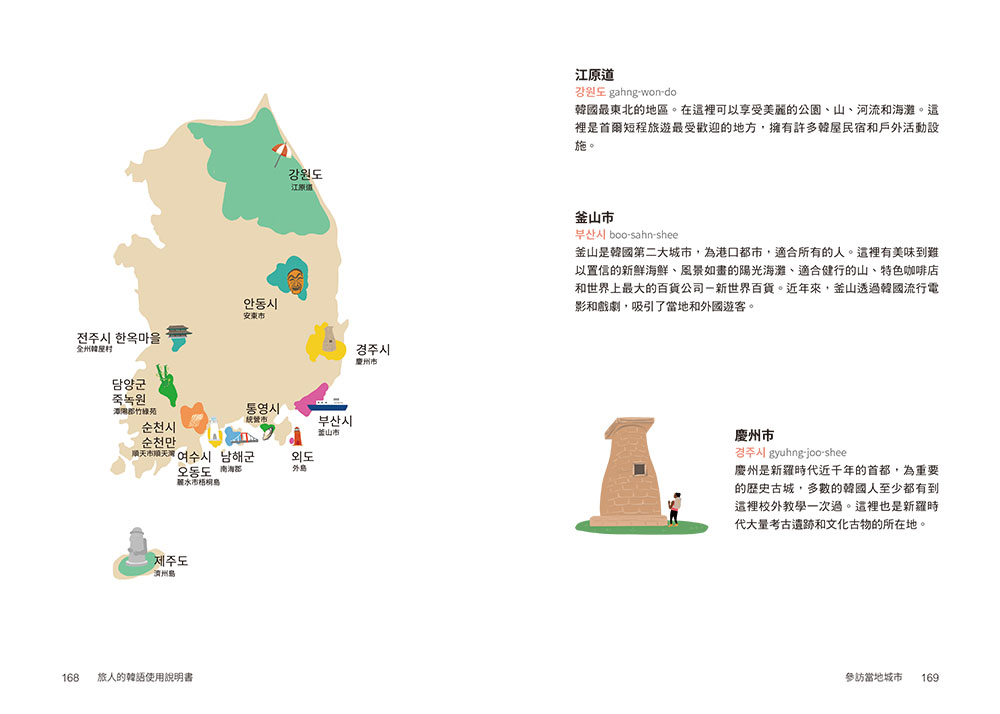 本書專為欲前往韓國旅行者設計,如果你需要或想要說韓語,只要擁有這本書,不必上昂貴的語言課程,或下載無數的教學檔案。內容豐富實用、簡潔,且易於攜帶,下次前往韓國時,不妨隨身攜帶!