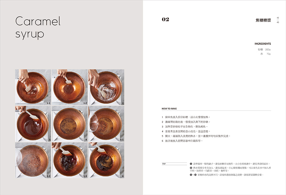 本書從「基礎焦糖技法」開始,教你做出6種不同濃度、甜度和型態的焦糖──