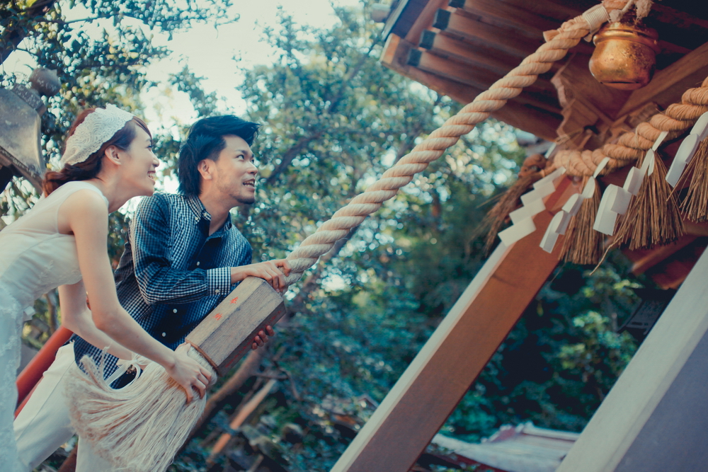 ▲兩位即將結為連理的新人,一起在神社前敲鐘許下永遠在一起的誓言,那份自然而真摯的情感,是畫面裡最大的重點,絕對不要讓被攝者為了擺POSE而擺POSE