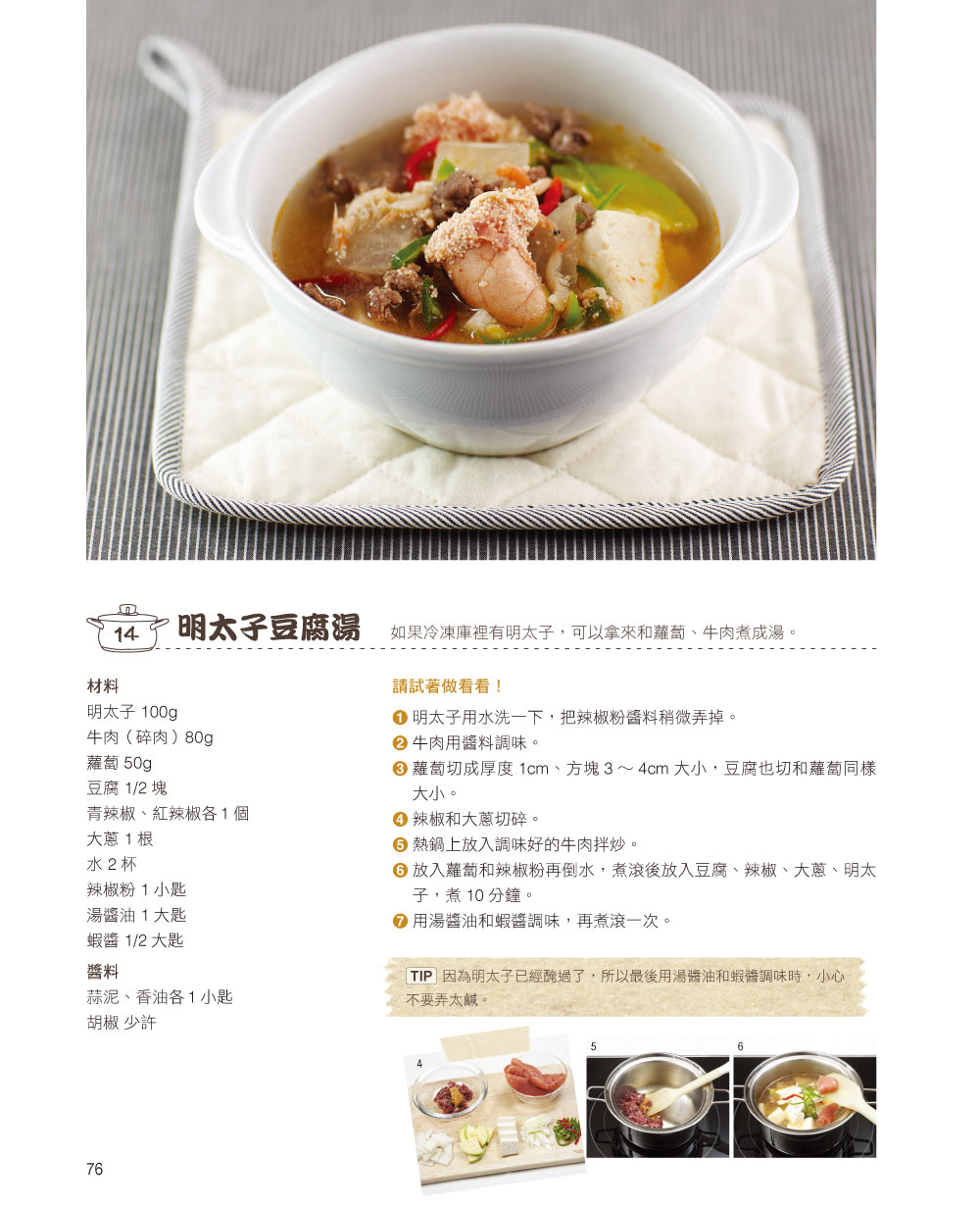 這本書裡包含了大家都愛吃的湯鍋料理,有很多即使是料理新手,也能參考書裡的食譜輕鬆做出的湯物料理,希望這些菜單能夠出現在大家的飯桌上。用新鮮的季節材料和符合家人們口味的材料,做出屬於各位獨有的食譜,烹煮出各種湯鍋料理吧。書中也分享了幾種異國湯品和粥的食譜,用特別的風味營造出不同的氣氛吧。