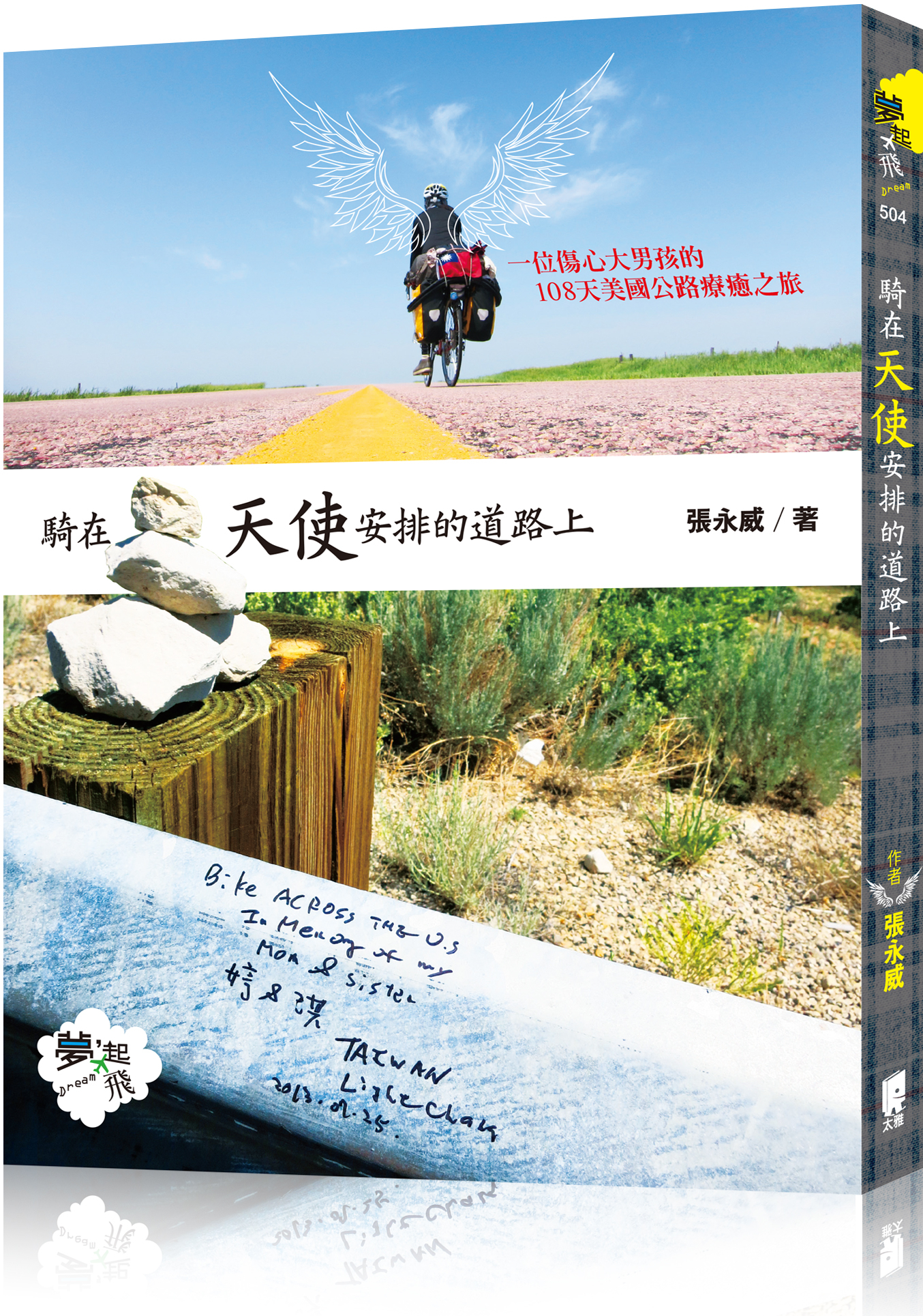 至今我仍然不相信我真的完成了,花了108天,靠著自己的雙腳,從大西洋騎到太平洋了,雖然我不是唯一騎腳踏車橫跨美國的人,但希望這本書,除了可以讓大家欣賞到旅途中美麗的風景和故事,也可以去感受我是如何學會面對我的人生,走出人生的黑暗面。