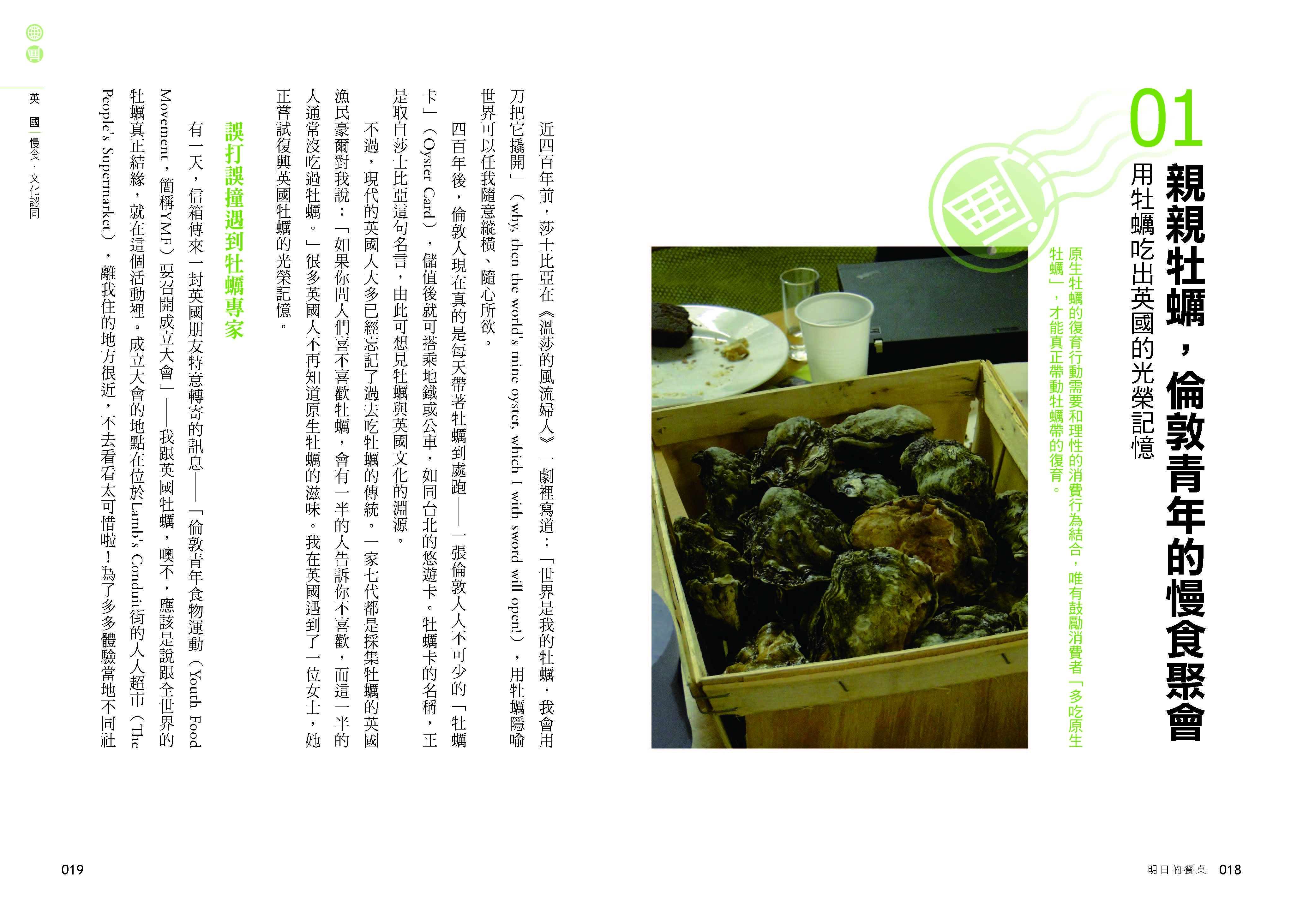 作者歷時八年,親歷英倫、歐洲、北美洲、中南美洲、北非、中東、東南亞、日韓、中國,進入食物生產、餐廳、農業、漁牧、飲食設計、公平貿易等現場,見證各地的生態廚師、咖啡小農、食物設計師、社會企業家、校園年輕人⋯⋯如何捲起袖子、展開行動,要求「重新設計我們的飲食清單」、「建立永續的食物生態系」。