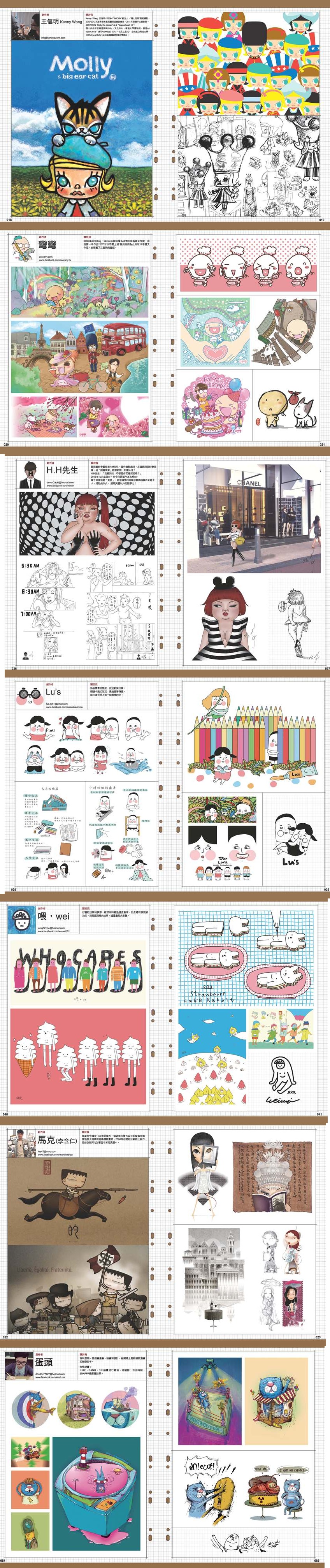 本書包含香港插畫師協會理事長,也是Molly設計師Kenny Wong,台灣知名網路圖文創作家彎彎、首位來自台灣少女漫畫作品《梵天變》,成功授權日本的漫畫家高永、設計過無數知名文具及卡通雜貨的怪怪新村負責人BO2、風靡國內紙品禮品業界的雷克小子作者黃熙文、超人氣職場部落客馬克、作品屢屢獲獎的知名插畫師馬賽Kyo、第一位登上日本週刊少年JUMP漫畫雜誌的漫畫家彭傑,以及近期崛起的新銳插畫師H.H先生、Lu’s等優秀插畫家共同參與這場插畫家的年度盛事。