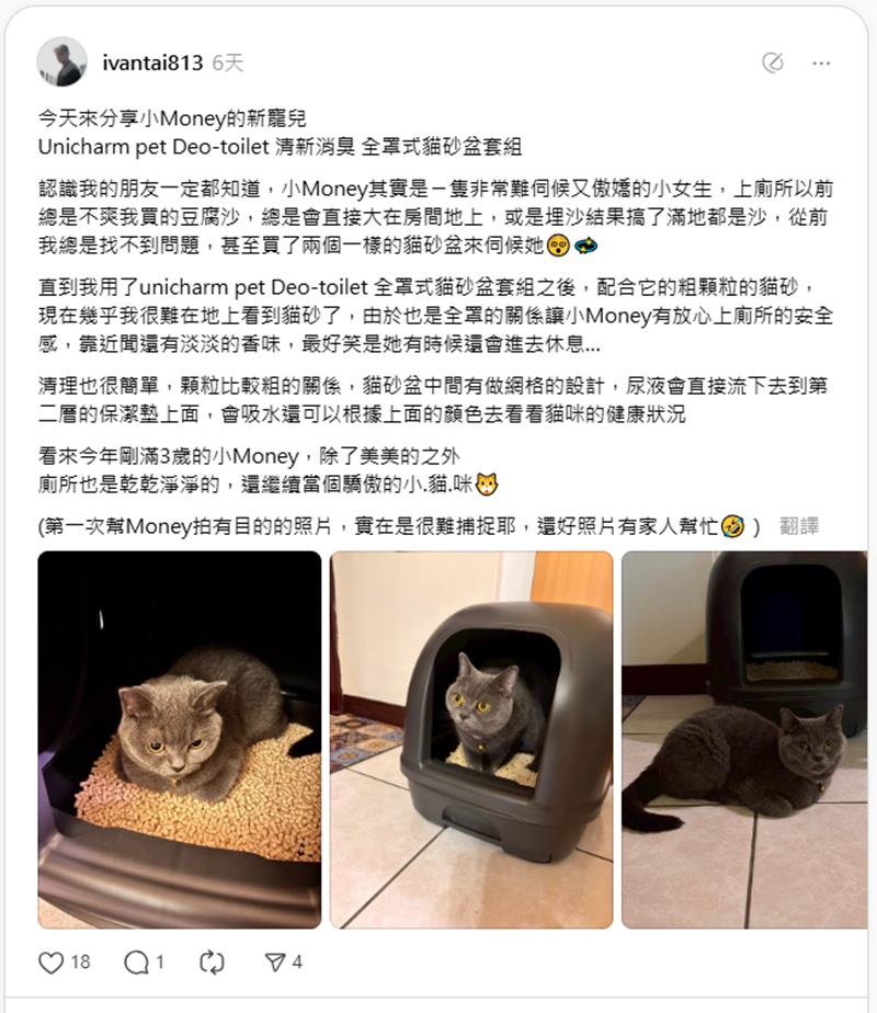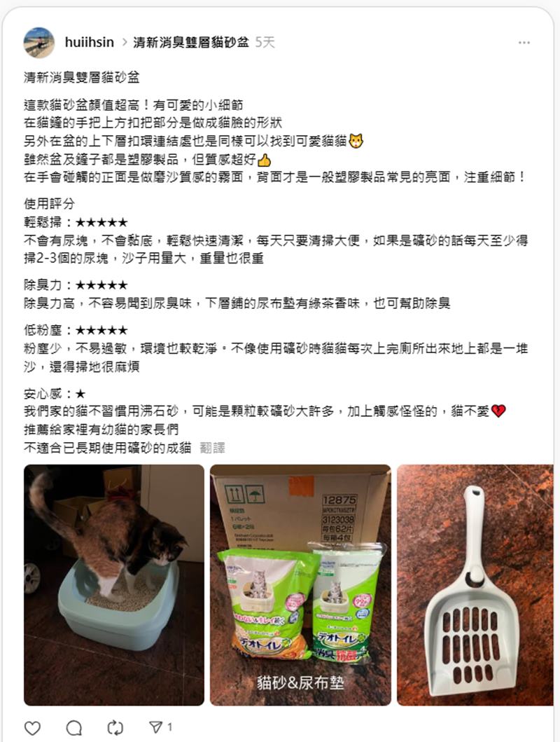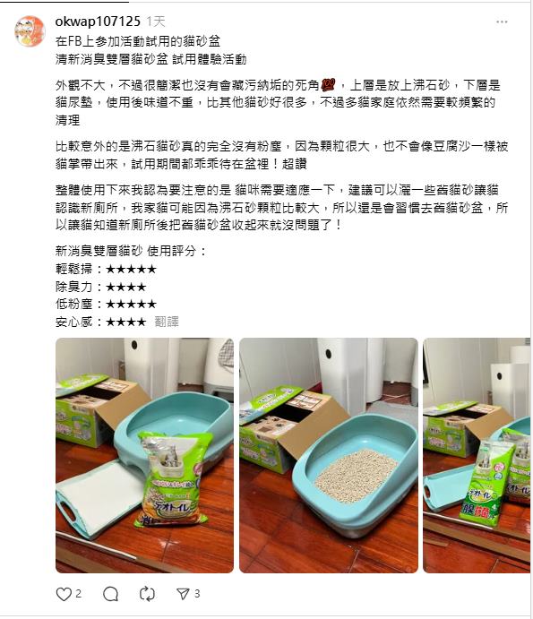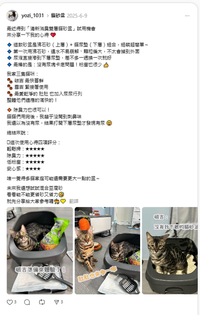 很高興參加 #清新消臭雙層貓砂盆的體驗