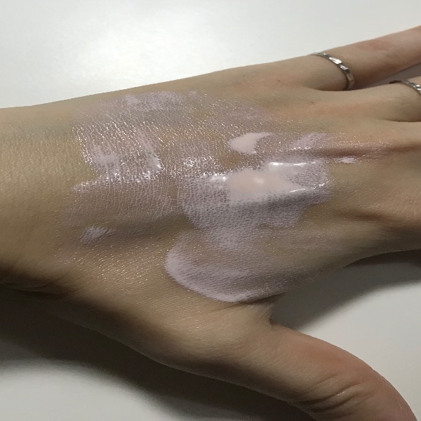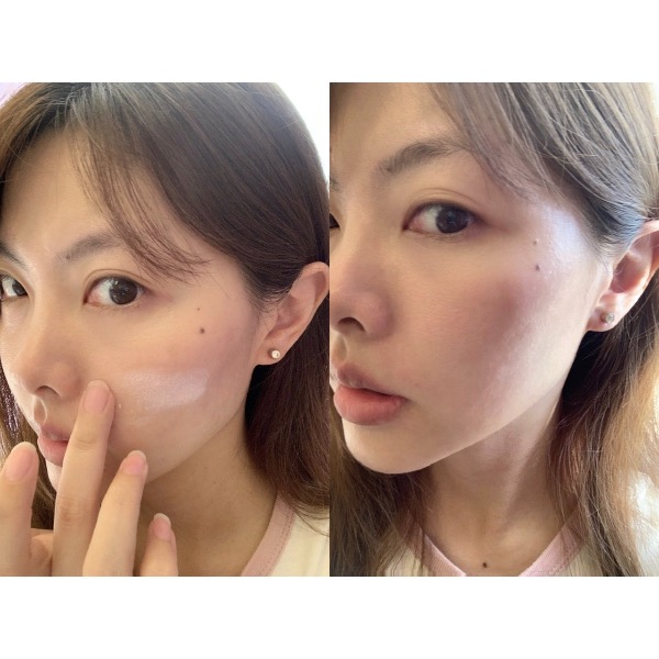 粉色液態質地清爽 比較水感 容易推開 用在臉上不粘...