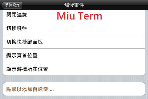 Miu Term的手勢功能非常多樣化,使用者一樣可以自行設定手勢,定義觸發事件。