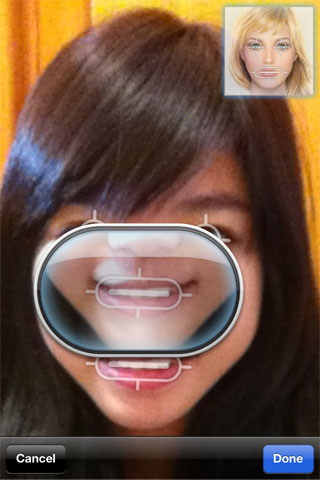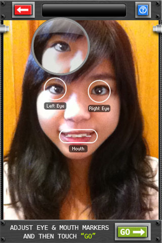 選擇照片後,再由手動調整眼睛、嘴巴的位置,手指點下去後,還會出現放大鏡的畫面,讓使
