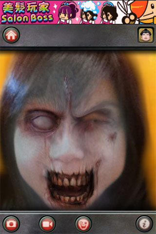 首頁圖就創造了毛骨悚然的氣氛,Hsuan在一個人的時候絕對不敢打開這款程式。由於與ZombieBooth屬於同一個公司的作品,因此使用的功能鍵也都大同小異,應該很容易上手。