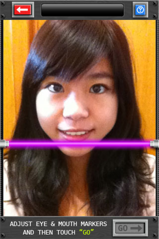 再來調整眼睛和嘴巴的位置,本程式會先自動抓取大概的位置,通常系統所抓取的位置還算準確,使用者只需要進行微調即可。