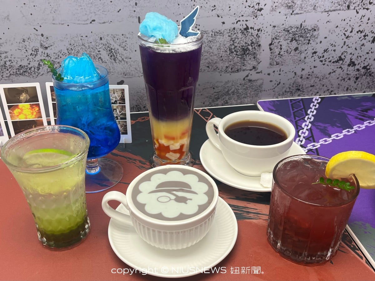 根據角色形象打造的特調飲品,共有「艾連的橙汁氣泡飲」、「米卡莎的石榴汁」、「阿爾敏的藍柑氣泡水」、「里維的紅茶」、「漢吉的咖啡」,以及「萊納的人生苦瓜汁」等。快來試試自己喜愛的角色特調吧~