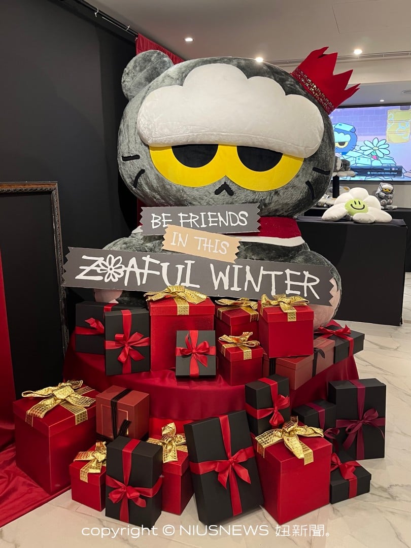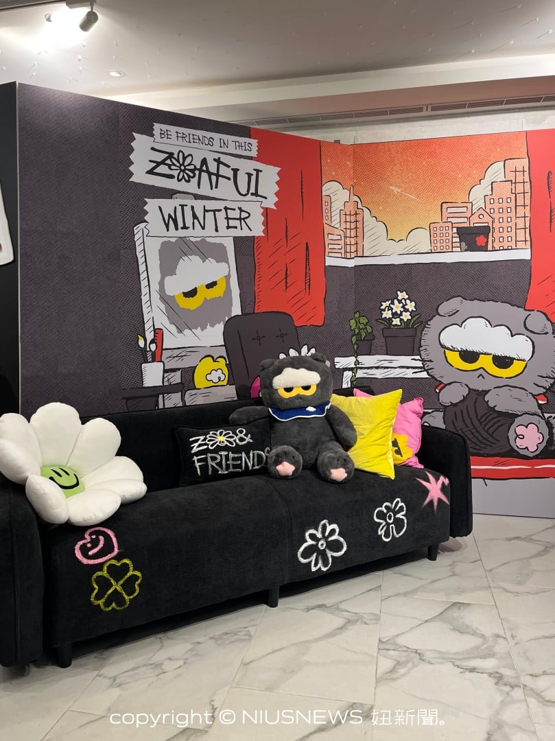走進快閃店,映入眼簾的即是戴著紅色小皇冠的巨大 ZOA 玩偶,而其標誌性的圍兜兜也換上了溫暖的紅色。環顧店內一樓,除一張黑色的長沙發可以讓大家抱著 ZOA 玩偶合照之外,後方還有超萌的貓跳台!來到二樓,即能盡情購買心儀的角色周邊商品。
