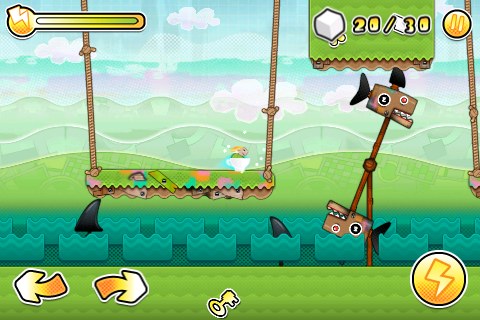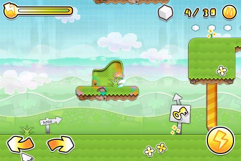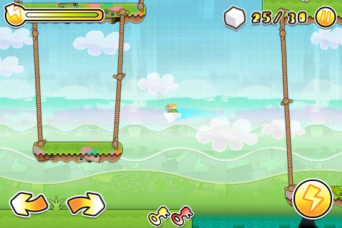 飛來飄去還不是遊戲的全部,關卡中另外存在著許多的小遊戲,而操作方式也是大致相同。進入到特殊機關之後畫面就會自動切換到適切位置,左右下角的按鈕有時候也會跟著改變,玩家只管專心享樂!