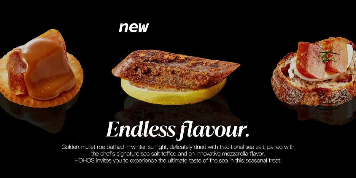 炎亞綸的點心品牌 HOHOS 重磅祭出的年度禮盒企劃,首款主打嚴選珍稀野生烏魚子的「台式頂級野生一口烏金磚禮盒」,巧妙延伸出海鹽太妃、莫札瑞拉起司、全新烏辣辣口味。另一款「法式王妃布蕾酥禮盒」,則承襲法式甜點工藝,以細膩層次展現優雅純粹的風味美學。