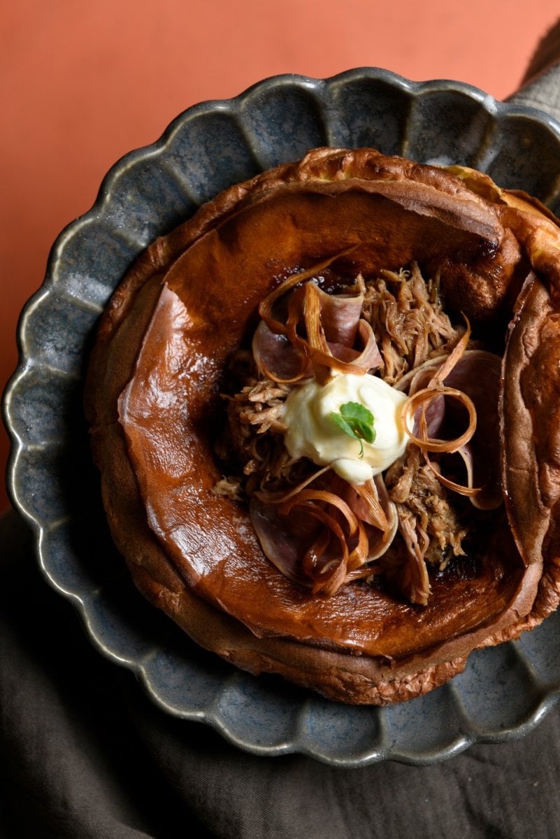 從小吃攤常見的山東蔥餅,搖身一變成為「山東蔥餅佐焦糖雞肝慕斯」,蔥香搭配炙燒過的雞肝慕斯,層次感超級豐富!