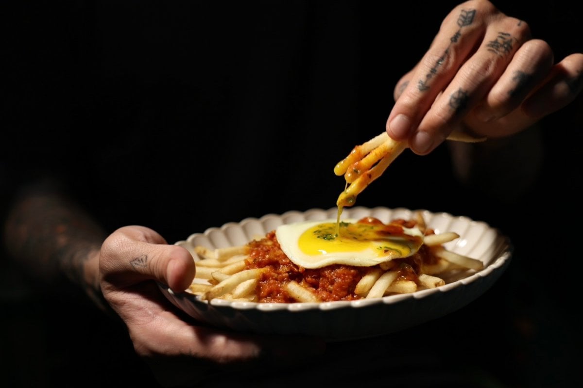 早餐店的肉醬蛋吐司也被玩出新意!「肉醬蛋薯條」以薯條取代吐司,搭配紅酒製作的肉醬和濃稠太陽蛋,光用想的就口水直流!
