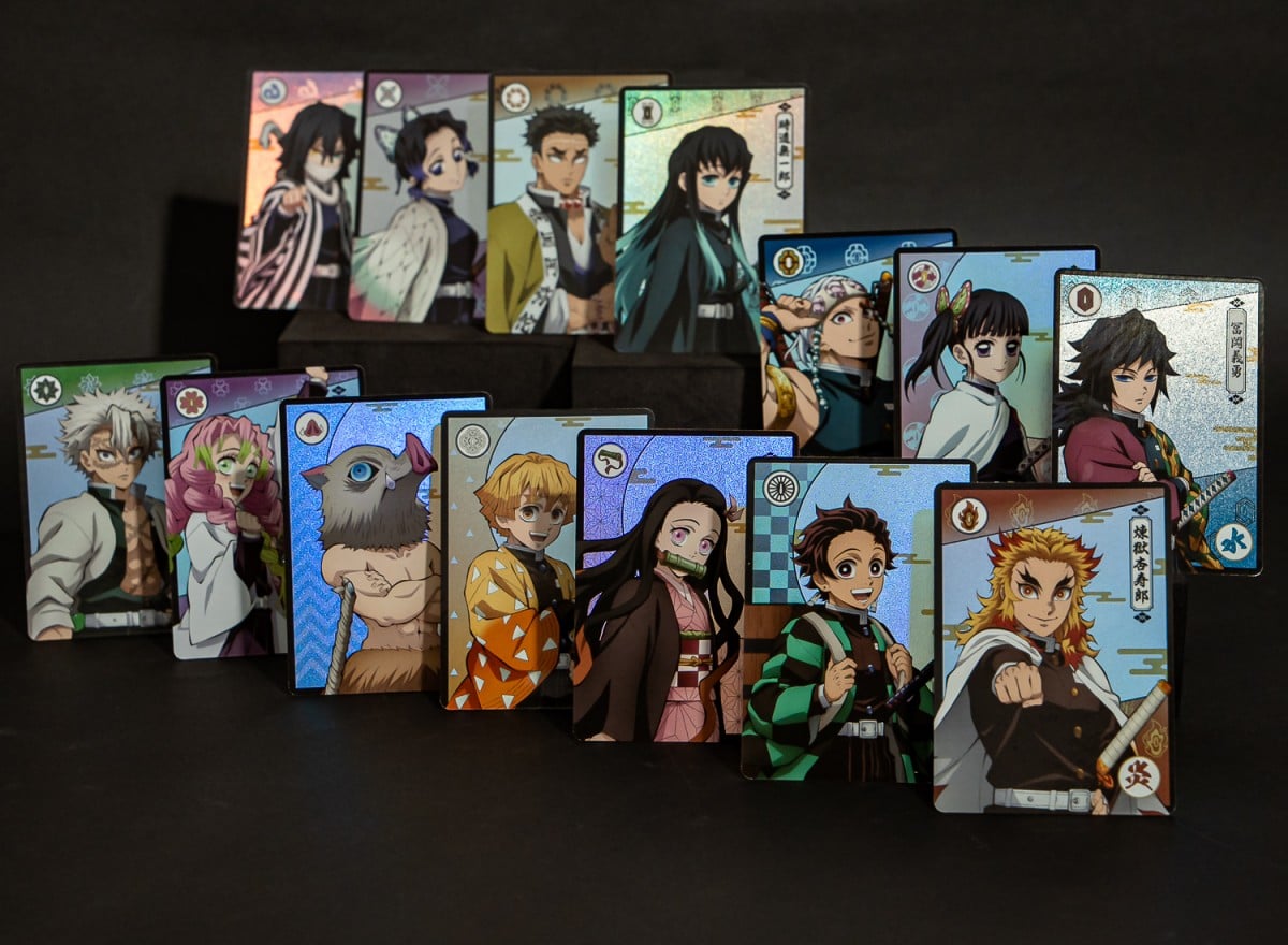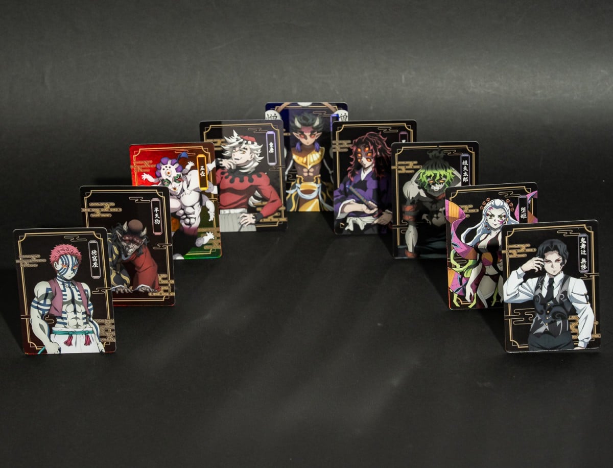 現象級夯作《鬼滅之刃》本次則推出三套卡牌,匯集以日系屏風與浮世繪設計「刀匠篇-人」、深邃黑金配色加傳統雲紋的「柱訓練篇-鬼」,還有呈現鬼殺隊與最強鬼們進行慘烈殊死戰的「無限城」主題。不管是哪套,都一定要抽!