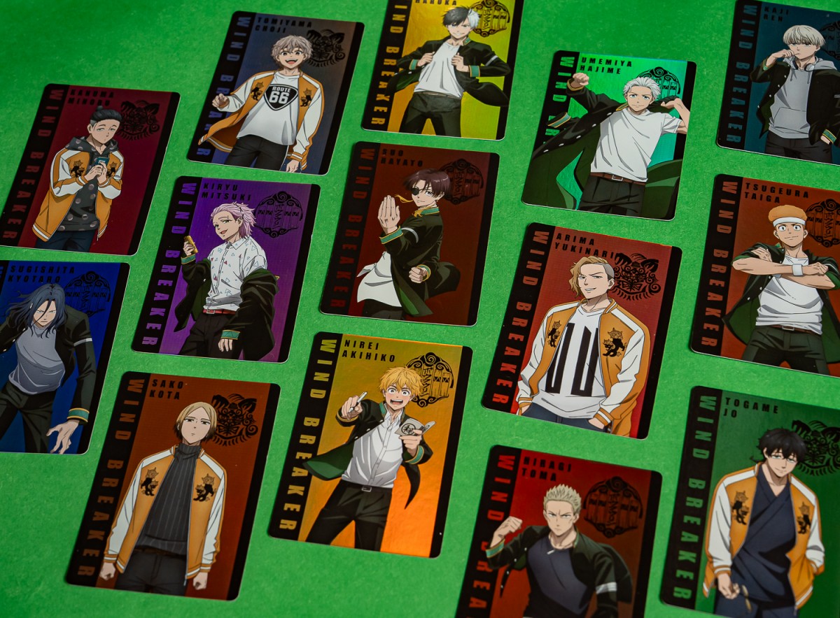 防風鈴來囉!熱血少年番《防風少年》所推出的卡牌,集結首季的兩校主角群「防風鈴」及「獅子頭連」。不只主角群站姿和專屬漸層配色凸顯出角色性格,融合圖騰的雷射炫光卡面實在是非常欠收藏。