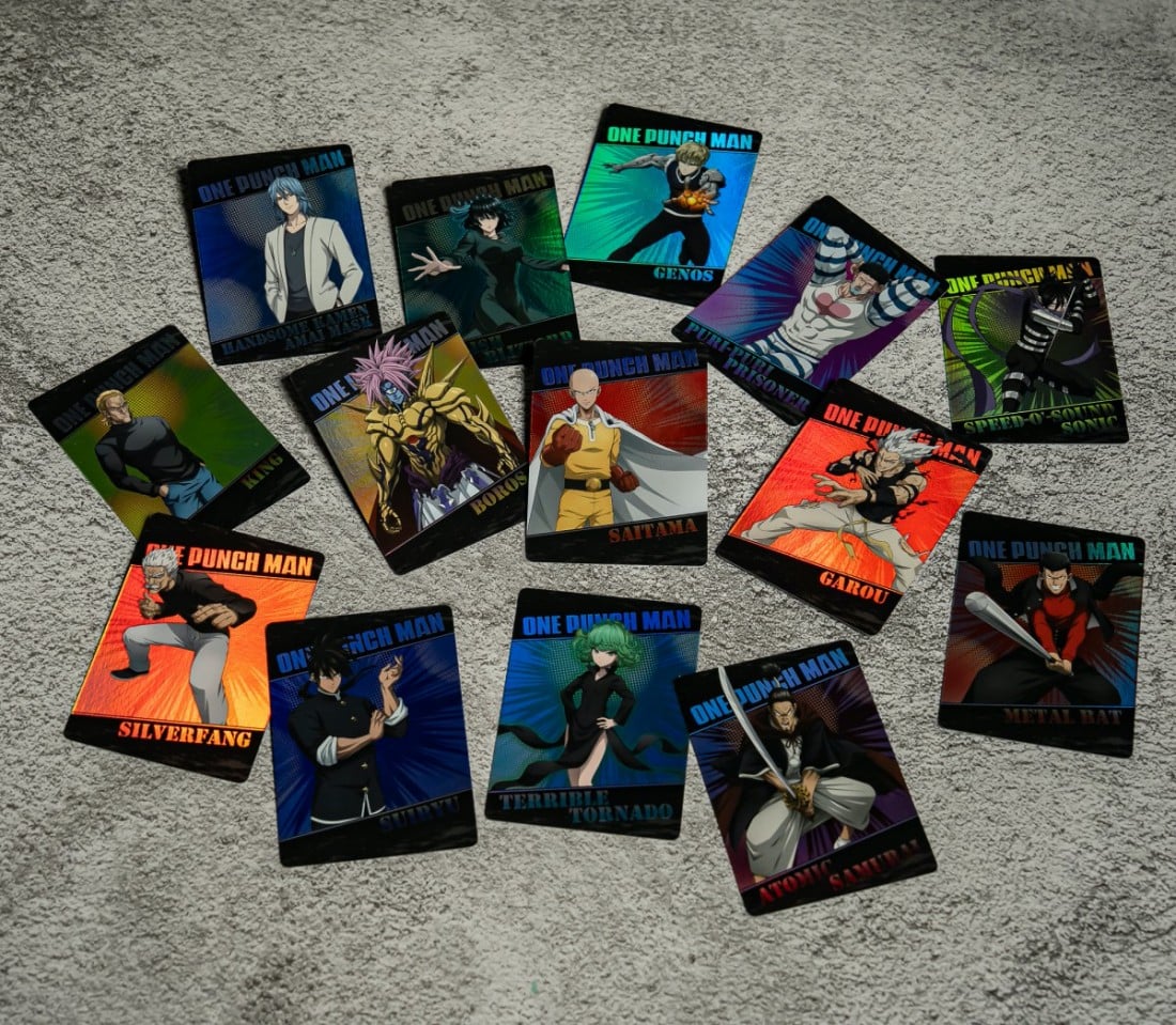 《一拳超人》以「一拳結束戰鬥」推翻傳統英雄公式,成多次蟬聯 Netflix 全球動漫週榜第一的超夯動畫。最新推出的卡牌收錄十四張人氣角色,包含埼玉、傑諾斯及波羅斯等戰鬥卡牌,皆搭配放射背景與燙金效果,將力量與角色氣場定格在名場面等級的卡面設計上。
