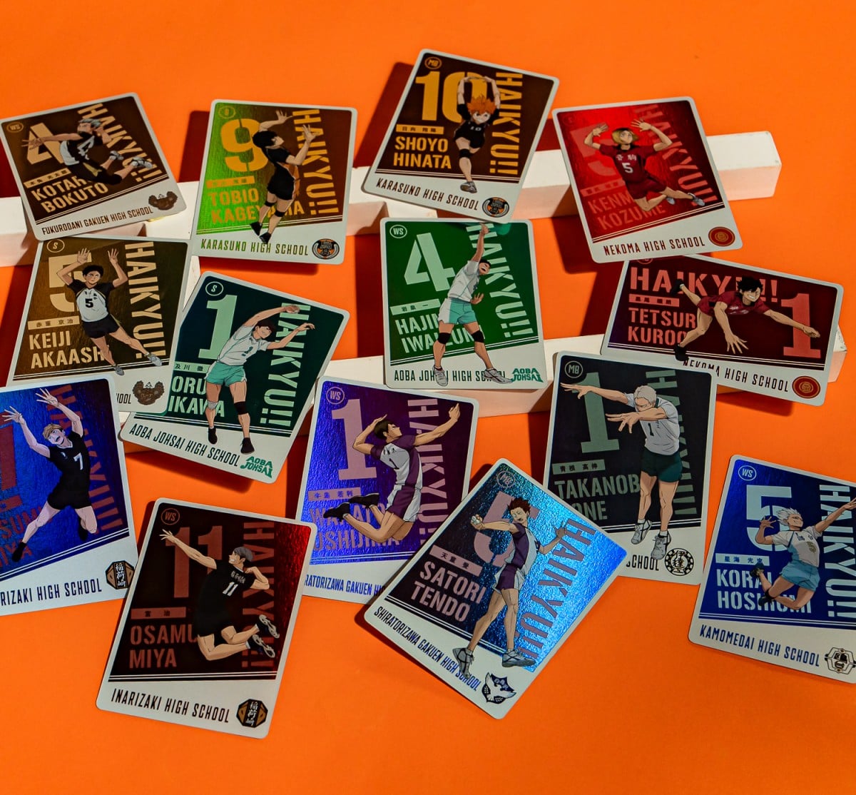 運動番強作《排球少年!!》的卡牌怎麼能錯過!每張卡面不僅捕捉各校王牌們扣球、殺球及接球等瞬間,還加上每位主角的背號、校徽及戰術角色的縮寫,秒讓排民們回想起比賽當下的熱血刺激!