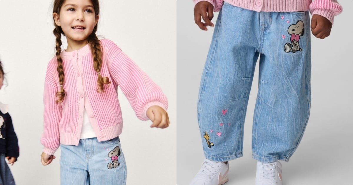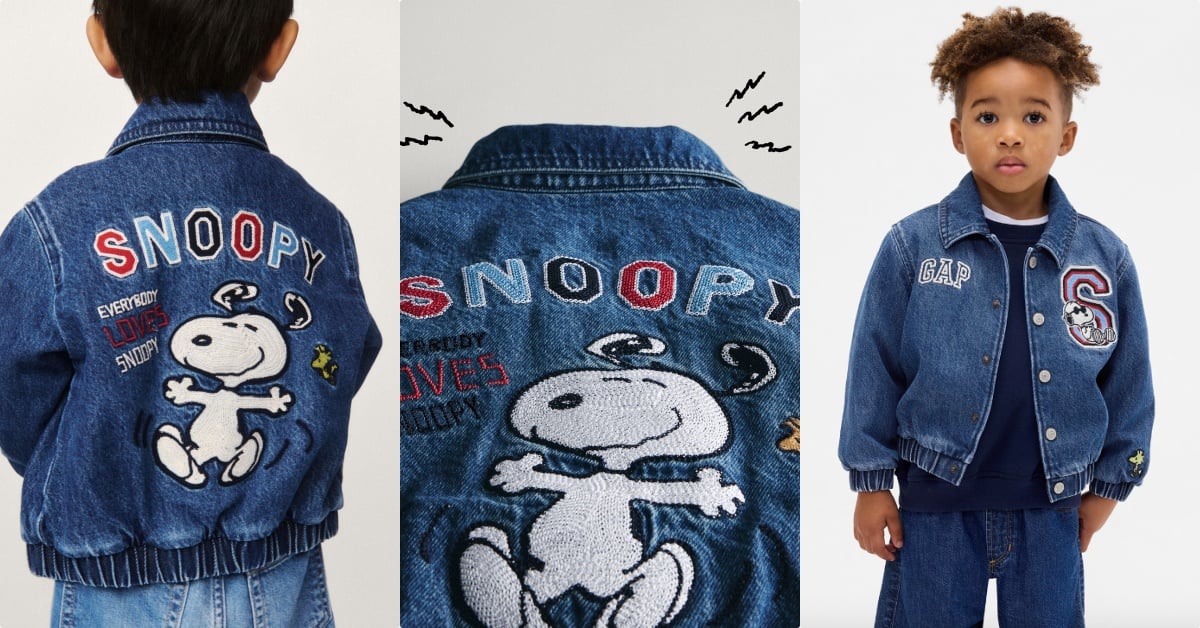 休閒中帶點俐落感的「丹寧童裝」也是這次聯名的一大重點!聯名翻領長袖牛仔襯衫,不只在下擺有史努比緊緊抱住查理布朗的身影,又分身變成戴墨鏡的「酷哥喬」從口袋探出頭來,另一款棒球外套版型的牛仔外套,背後則藏著繽紛大彩蛋,還有一件女寶專屬的「愛心版本史努比」丹寧褲。