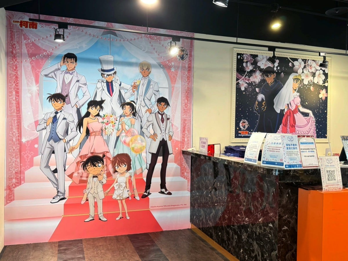 本次 MyAnime café 特別換上《名偵探柯南》30週年主題店裝,以「優雅禮服」為設計概念,讓角色們全員盛裝亮相,營造出宛如參加紀念舞會般的沉浸式體驗,一走進店裡就能感受到滿滿儀式感。