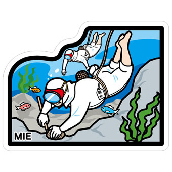這些長得像潛水夫的人是「海女」,到海底採海螺、海膽是他們的工作。