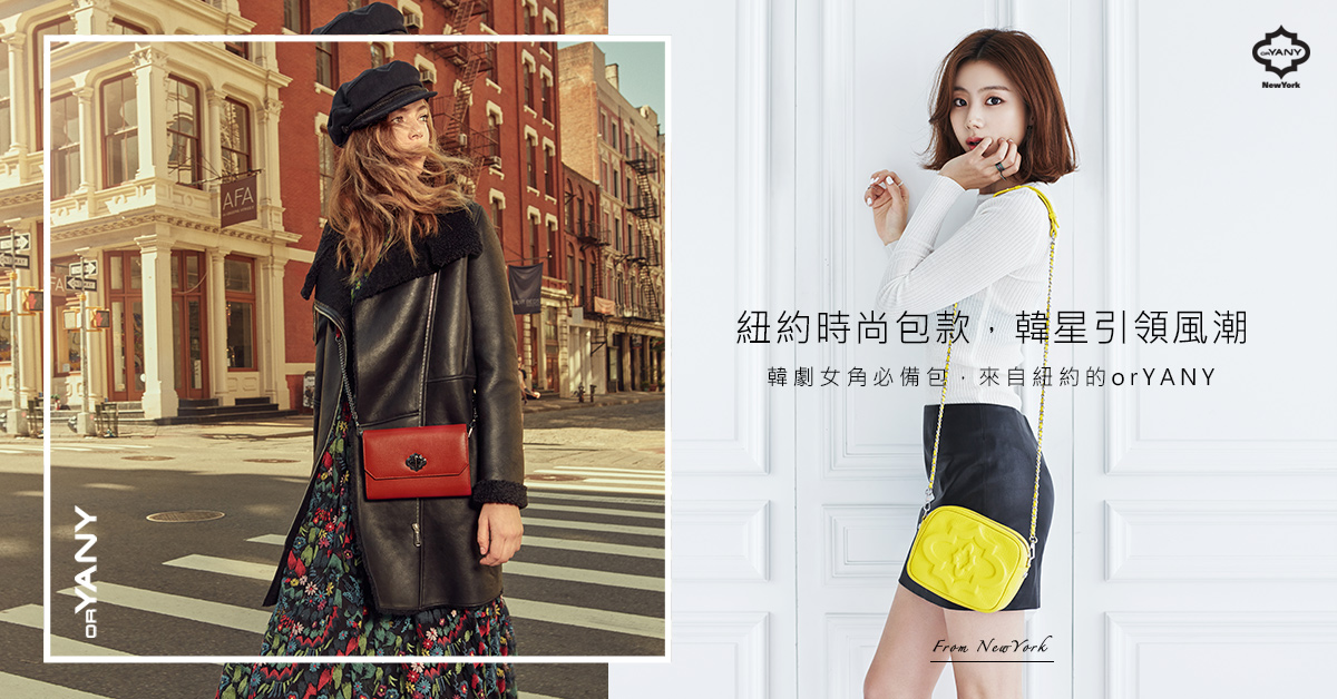秋冬穿搭新選擇,來自紐約的全新風潮。想像韓星一樣霸氣穿搭嗎? 那絕不容許錯過新進駐台灣的紐約包款品牌orYANY ,將帶給你全新的時尚體驗。