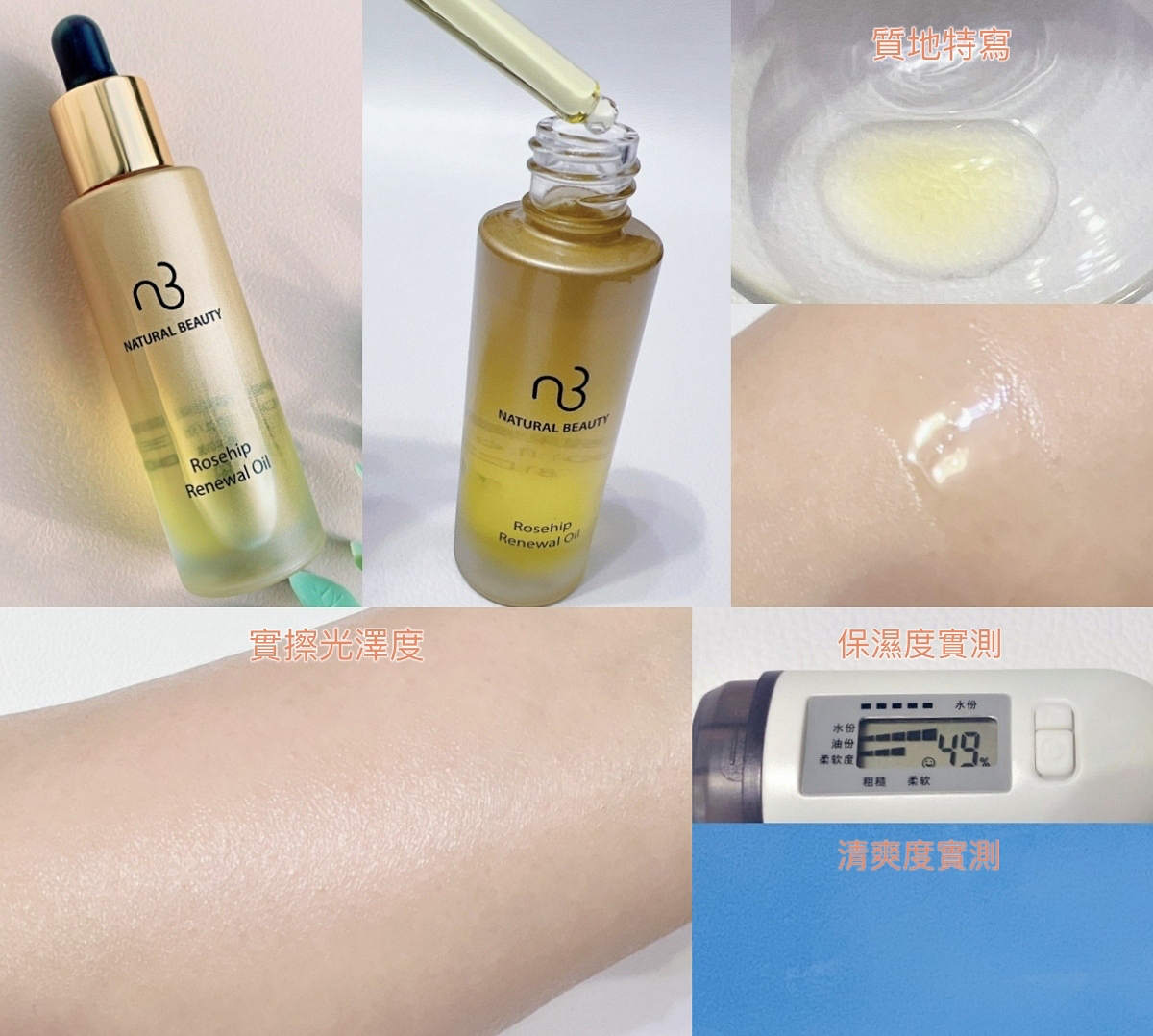 東森自然美旗下保養品牌支線眾多,NB的積雪草煥活系列算是很受歡迎的經典系列,針對現代女性生活型態與敏感膚況所研發,訴求舒敏x抗老的高效保養,並透過微脂囊包覆技術提升滲透吸收力!系列中的這瓶玫瑰果精華油,質地實擦膚觸很柔滑好推展,適合按摩使用;妞編輯自己測試擦在乾癢部位,舒緩乾燥乾癢的效果很不錯,肌膚表面不會留有油膩厚重感,實測保濕力&吸收力也很OK!這款油沒有太明顯的香氣,敏感肌也能安心使用。(若是敏感肌使用,建議就不需要做過多的按摩唷!)