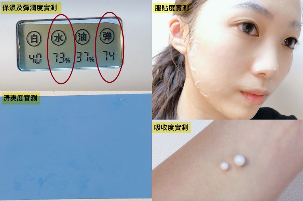 實測敷完這款面膜後,用儀器測量肌膚的保濕度及彈潤度大增,保濕度由28%攀升至73%、彈潤度更從46%提升至74%。面膜薄透且服貼度極好,妞編輯能夠邊敷面膜邊做其他事,面膜也不會滑落或位移;清爽度和滲透吸收力也不錯,整體使用感非常優!用於妝前5分鐘短時間敷臉作為急救保養也很有感!(是妞編輯自己私心愛用大推的一款面膜!)