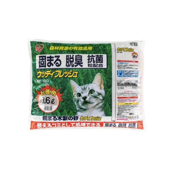 森林資源回收木材原料之再製品,使用後以可燃性垃圾處理丟棄即可,礦物型貓砂,使用少量即可快速有效凝結。使用高除臭功率木粉為原料,強效臭味抑制作用。