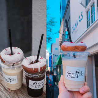 甜甜圈用手拿太落伍了啦!把它插在飲料上才潮的「Canvas Tokyo」咖啡館