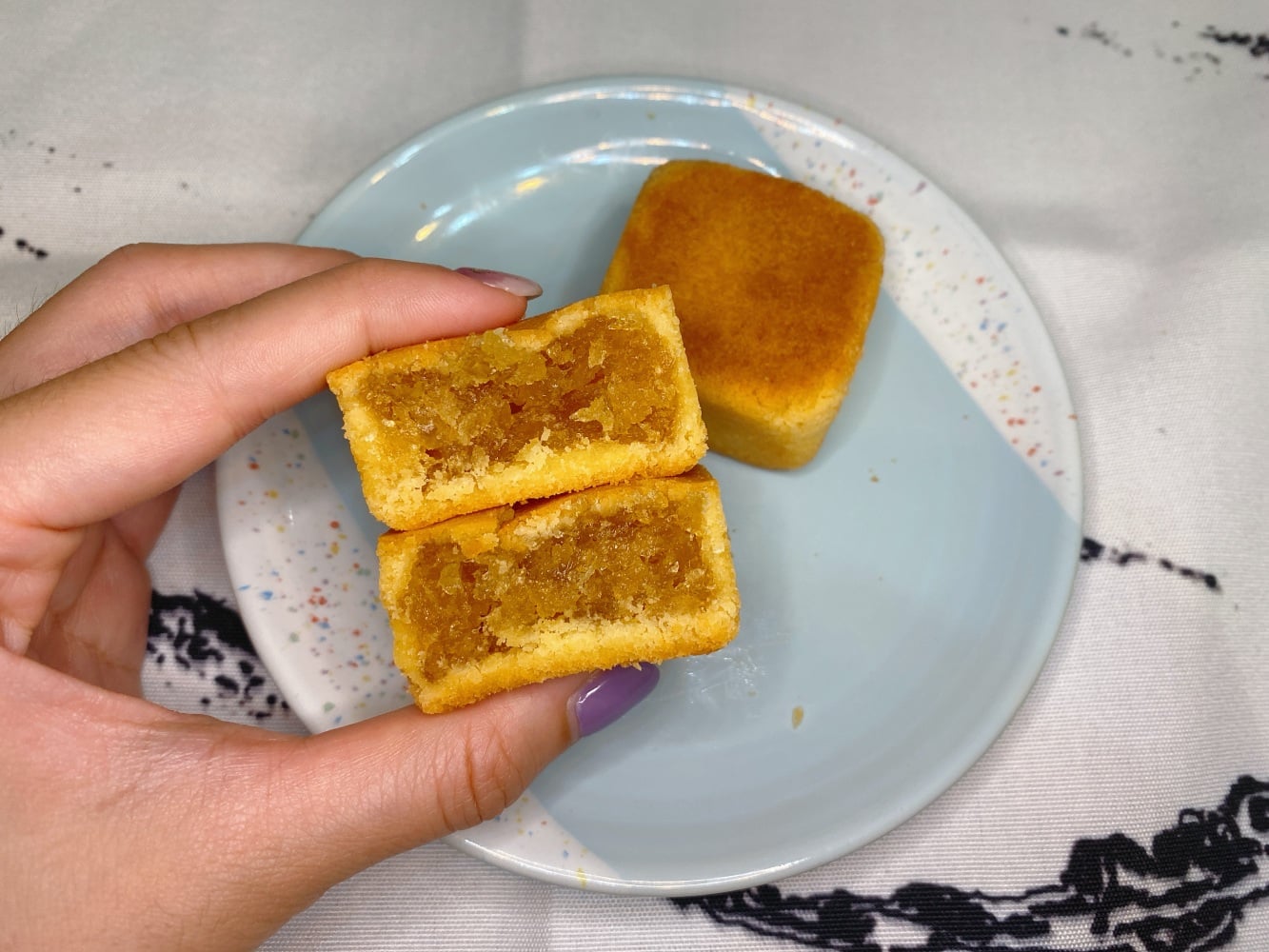 金黃色的香酥外皮烤得鬆香,內餡甜而不膩、口感相當紮實,每口都能品嚐到鳳梨的香甜!