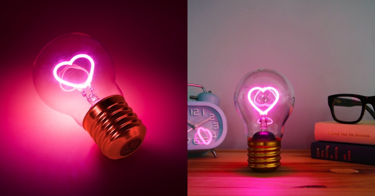 氛圍感燈泡超加分~英國禮品設計品牌「Suck UK」製作一系列超美燈泡,四款分別是燈泡絲、愛心、星星、彩虹,其中粉色愛心款深得妞編輯的心,透著霓虹光的造型燈泡像鑽石一樣在黑暗中閃閃發亮,不需要插電,充飽電後可使用6小時,續航力佳、省事又輕盈~